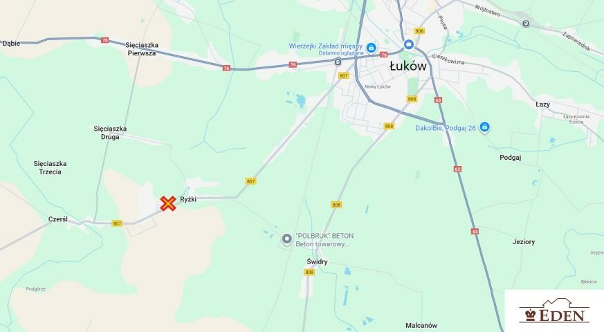 Działka posiada wyjątkowo korzystne położenie bezpośrednio przy drodze asfaltowej wojewódzkiej nr 807 (Łuków - Stanin), co sprawia, że jest to miejsce idealne zarówno do zamieszkania, jak i do prowadzenia działalności gospodarczej.